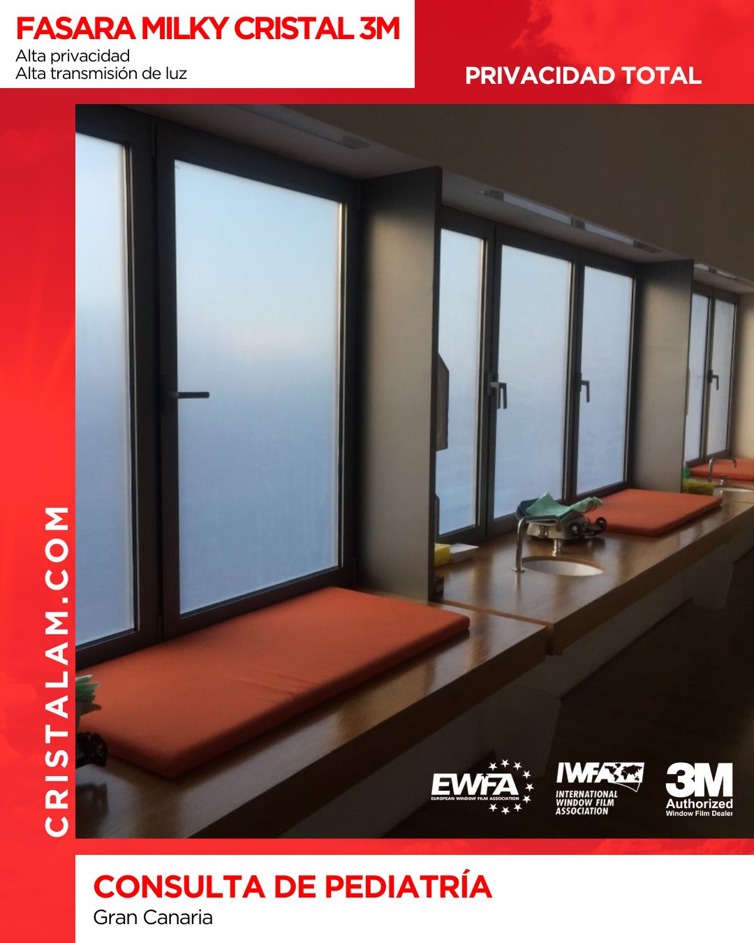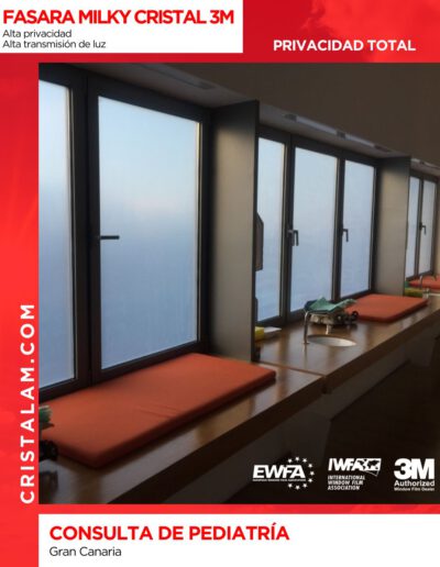 Las láminas Fasara Milky 3M dan un cambio de tonalidad en las ventanas, dejando un color blanco que ofrece un toque de profesional y sofisticado a cualquier espacio.